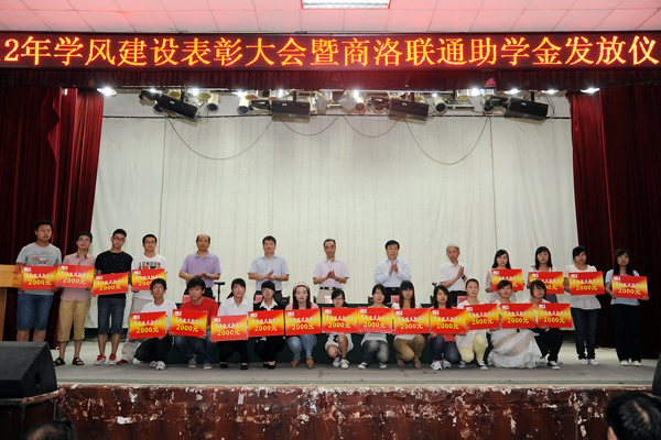 2012年11月29日,我校与商洛联通公司签署了《战略合作协议》。今年商洛联通公司在我校设立助学金,资助我校家庭经济困难学生20名,每人资助2000元。