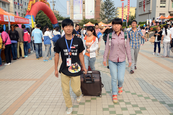 9月5日,我校2013级新生入学报到工作正式开始。学校彩球高悬,从校门到各个报道点路两旁彩旗飘飘,整个校园呈现出一派热烈、欢乐的景象。来自五湖四海的2013级新生们背着行李,怀着梦想来学校报到。