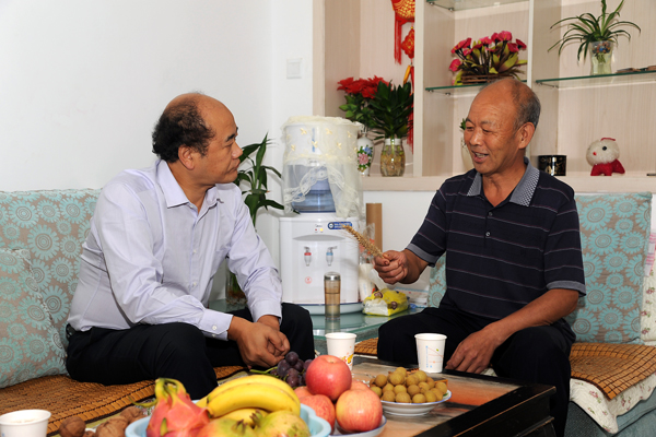 在于浩世家中,刘建林详细了解了于浩世在小麦育种研究中取得的最新成果,并向他为学校科研服务地方工作做出的贡献表示感谢。刘建林说,小麦育种工作是我校改革发展中涌现出的一个亮点,今后要把这项工作深入持续下去,可以考虑成立商洛学院良种繁育中心。希望于老师继续作为育种工作的带头人,培养一支精干的科研团队,为我校的发展凝炼特色。刘建林要求生物医药工程系高度重视和支持此项工作,积极协调、解决实验田和实验室问题,再出新成果、多出好成果。