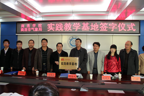 为充分利用气象科技资源,普及气象科学知识,改善学校实践教学条件、加强校局合作、服务商洛社会经济发展,11月20日,我校与商洛市气象局举办了实践教学基地建设协议签字暨授牌仪式。校党委委员、教务处处长刘端森,城乡发展与管理工程系主任杨存典,商洛市气象局党组副书记、副局长周军元,总工程师赵世发,业务科长田玲出席签字暨授牌仪式。仪式由赵世发主持,我校2012级地理科学专业部分师生参加活动。