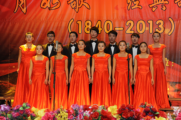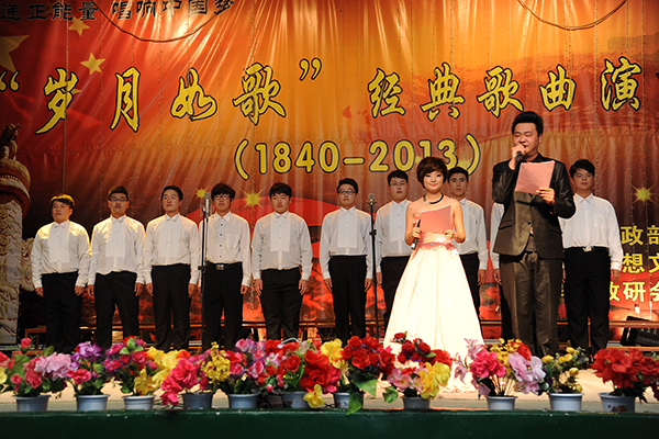 演唱会以“传播正能量、唱响中国梦”为主题,分为“雄关漫道真如铁”、“人间正道是沧桑”和“长风破浪会有时”三个篇章。一曲《送别·长亭外》拉开了演唱会的序幕。该曲节奏时而舒缓,时而高亢,旋律婉转悠扬,处处表达着对友人的深情厚谊、恋恋难舍的情感。接下来,同学们深情演唱了《月儿弯弯照九洲》《八月桂花遍地开》《映山红》《十送红军》《过雪山草地》等多首经典歌曲。一曲《山丹丹花开红艳艳》将演唱会推向高潮,现场掌声雷动,《歌唱祖国》以激情澎湃的气势向我们传递着中华儿女对祖国的浓情厚意;《东方之珠》《七子之歌—澳门》仿佛缓缓诉说着祖国日益强大。最后,在一曲充满浓情的《让世界充满爱》歌声中,演唱会圆满结束。