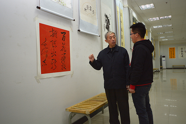左晓民在观看了参展作品后指出,本次展览以书画诗词的艺术方式展现了毛泽东同志带领全国各族人民开创新中国伟大事业的光辉历程,具有较强的思想性和较高的艺术性;对激励我校师生以党的十八届三中全会为契机,团结一心,建设特色鲜明、多学科协调发展的应用型本科院校具有积极的推动作用。左晓民还对刘宇昭提出了殷切希望,从练就扎实基本功、注重章法和整体效果等方面给予了具体指导。他现场题写了“心沉气静 守拙有成”两句话赠送给刘宇昭,以示鼓励。