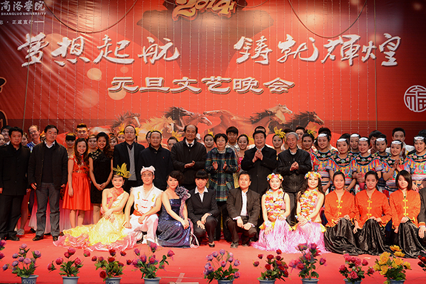 辞年喜饮三蛇酒,贺岁争描八骏图。12月30日晚,我校举办2014年元旦文艺晚会。校党委书记张景书,院长刘建林,党委副书记左晓民,纪委书记王思怀,副院长陈永庄、魏书堂及各系(部)负责人同师生们一同观看演出。商洛市副市长刘荣贤,商洛市委宣传部网信办主任赵嘉安,共青团商洛市委副书记刘鹏,商洛市供电局党委书记陈飞,商洛市邮政局副局长张勋,中国联通商洛分公司副总经理陈安民等政府机关、企事业单位领导和社会各界人士应邀来到晚会现场,与我校师生共庆佳节。