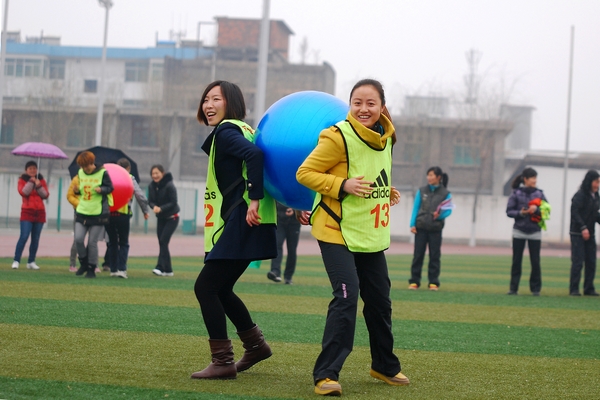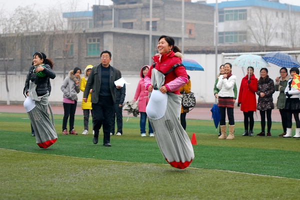 随后举办的趣味运动会设有“海底捞月”、“袋鼠跳”、背球接力等三个集体项目,单人跳绳和单人踢毽两个个人项目。平日里紧张工作的女教职工们放松身心,一改严肃的面孔,轻装上阵,踊跃参赛。男教职工们也兴致勃勃地来到活动现场为女教职工们出谋划策、加油喝彩。活动现场笑声不断,氛围轻松愉悦,充分展示了我校女教职工团结、向上、开朗、活泼的风采魅力。