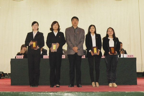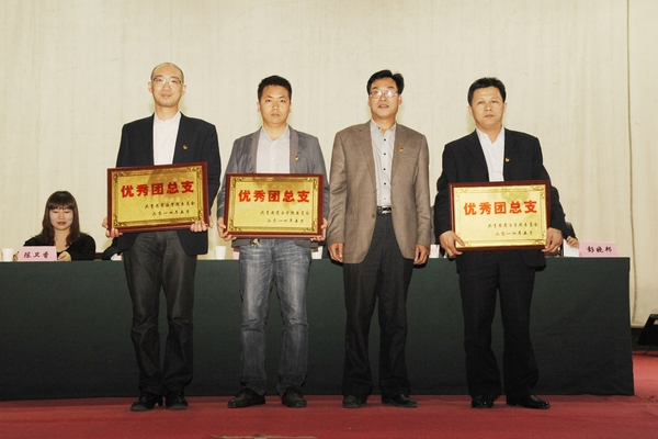 左晓民为获得“支持共青团工作好处长”称号的高荣发、郭英勇、石启英、汪玉琳、张林,和获得“支持共青团工作好书记”称号的刘全民、张亚强、任康民颁奖;高荣发为获得“优秀团总支”称号的人文社会科学学院团总支、城乡规划与建筑工程学院团总支、化学工程与现代材料学院团总支颁奖;郭英勇为获得“优秀团总支书记”称号的陈倩、黄璜、杨艳、芦晓立颁奖;石启英为获得“优秀团员”“优秀团干”“优秀学生干部”称号的毛玮、吴楠楠等颁奖。
