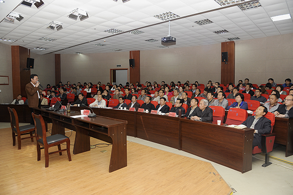 校领导张景书、左晓民、王思怀、魏书堂,各二级学院负责人、教学机构负责人,全校副高职称及以上人员听取了报告。报告会由党委副书记左晓民主持。