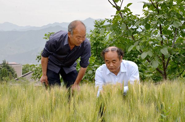 5月30上午,校长刘建林在小麦育种专家于浩世的陪同下,深入小麦试验田,调研我校小麦新品系“商麦065—10—16”和“商麦0613—12—3—2”的试种情况。校秦岭植物良种繁育中心主任王新军、生物医药与食品工程学院副院长张向东、校办公室副主任鱼小强陪同调研。