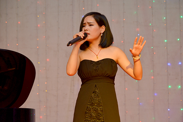 音乐学专业优秀毕业生陈颖、窦贝贝、吴丹、强薇、郭敏、杨柳、褚瑶为大家带来了精彩的表演。《我亲爱的爸爸》旋律优美,演唱深情动人,描写了少女劳莱达为追求爱情向爸爸恳求的场景;《让我这样看着你的样子》生动形象地讲述了巴丹公主对花木兰这位替父从军的假小子投入爱慕之情的故事;《扬鞭催马运粮忙》热情明快,富有强烈的艺术感染力;二胡表演《奔驰在千里草原》描写了牧民在草原上奔驰的情景,抒发了对未来幸福生活的向往;歌曲《我要我们在一起》宣唱着2010级毕业生对自由对未来无限向往的心声。