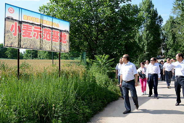 刘建林和叶赟为秦岭植物良种繁育中心试验示范推广站揭牌,并在育种专家、技术人员陪同下先后参观了宏泰金银花专业合作社、商洛市中药材金银花GAP科研工程技术研究中心科研基地、金银花中草药养生鸡场、秦岭植物良种繁育中心小麦示范基地、小麦新品种“商麦1619”良种示范田和寺坡小白黄瓜提纯复壮田,在田间地头现场考察了秦岭植物良种繁育中心各项科研成果的后续试验、开发、应用、推广等转化活动,调研了繁育中心在人才、科技、资源等方面的发展需求。