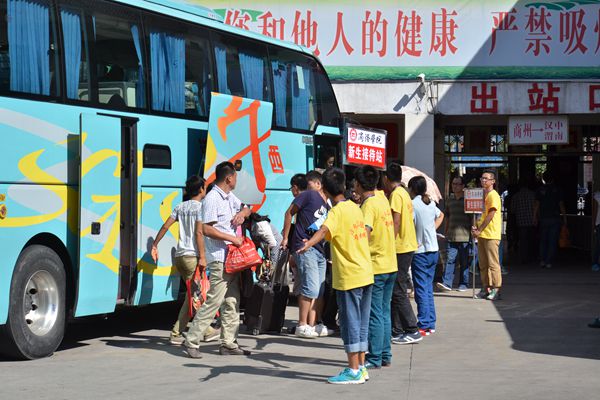 从火车站、汽车站到校门口,我校出动数辆校园直达公交,在车站设立多个迎新点日夜不间歇接送新生,接站带队老师和志愿者们一路引领新生安全抵达校园。