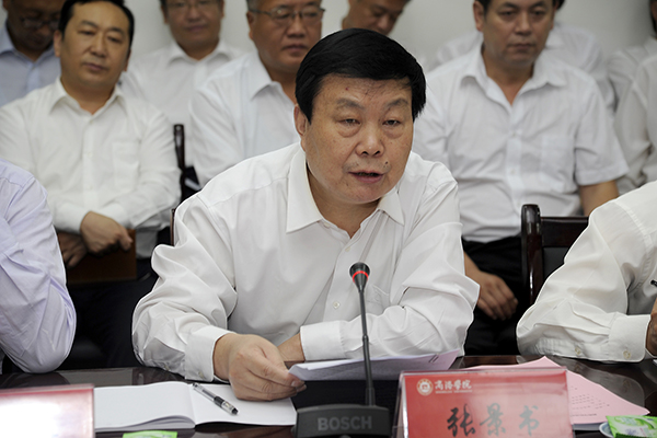 校党委书记张景书在致辞中代表学校对巡视诊断专家组表示热烈欢迎。他指出,作为一所新建地方性本科院校,我校经过全体教职员工的艰辛工作,取得了一定成绩,但是要实现学校可持续、高水平发展,还存在许多深层次的问题和困难。省委赵书记指出的“三化”问题,在我校也不同程度的存在。当前,我校正处在向应用技术大学转型发展的起步阶段、迎接教育部本科教学合格评估的关键时期,巡视诊断专家组来到我校,对学校发展状况进行把脉,帮助学校找出病根、开出药方,一定能为学校今后的发展指明方向。张景书表示,我校将积极、全力配合专家组的工作,以巡视诊断为契机,深入总结和分析办学过程中取得的成绩和存在的差距,认真按照专家意见全面做好整改提高,积极根据高等教育发展的新形势、新要求,进一步理顺内涵发展思路,更新教育观念,深化教学改革,加强教学管理,提高教学质量,为区域经济社会发展培养更多应用技术型人才,作出新的更大的贡献。