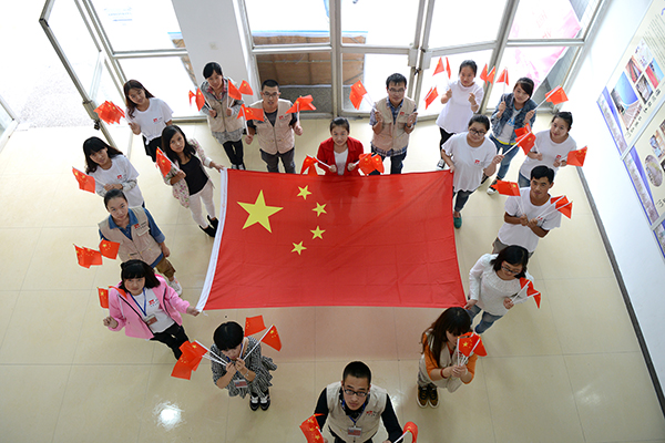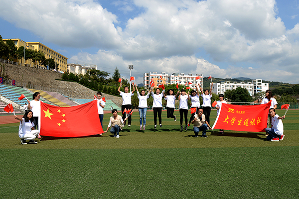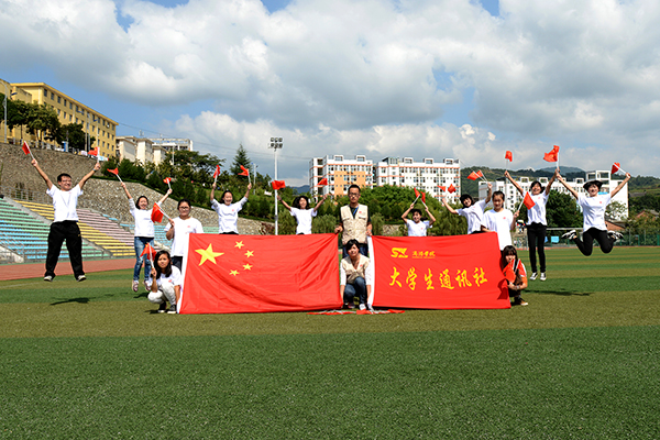 在中华人民共和国65周年华诞到来之际,有网友发起“我和国旗合个影,我为中国点个赞”活动,迅速燃起了网友们的爱国热情,短短几天内,该话题在微博上的阅读量就超过6000万。该活动在我校也受到热捧。近日,我校大学生通讯社的同学们自发开展了“我与国旗合个影 我向祖国献祝福”活动,拍摄并在微博上展示自己与国旗的合影,撰写或转发祝福祖国的话语,用鲜艳的五星红旗、最美的笑脸、最真的祝福为祖国65周年生日华诞献礼。