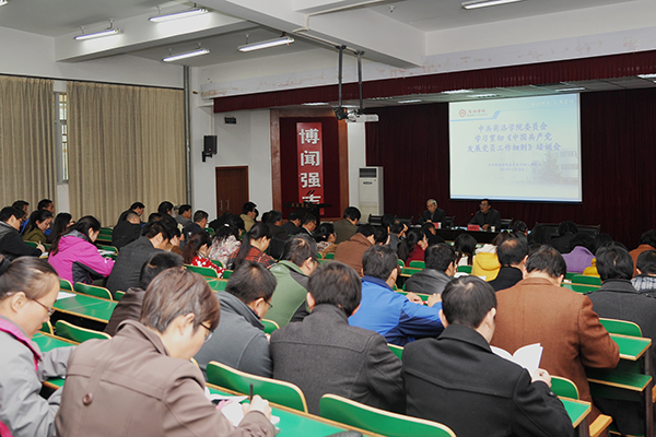 11月20日下午,学校召开学习贯彻《中国共产党发展党员工作细则》培训会,对各党总支和直属党支部委员、各党总支下设党支部书记和组织委员100余人进行了专题培训。校党委副书记左晓民出席会议并讲话。培训会由校党委委员、干部人事处处长高荣发主持。