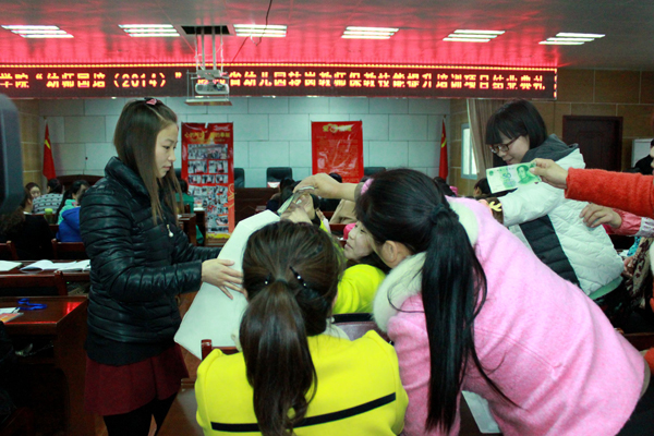 11月27日,我校“幼师国培(2014)”——陕西省幼儿园转岗教师保教技能提升培训项目正在举办结业典礼,在得知王珍琪老师的患病消息后,学员们自发在结业典礼上进行捐款,踊跃捐款的场景十分感人,短短几十分钟内共筹集善款3338.7元。