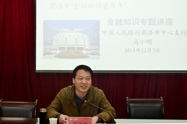12月3日下午,中国人民银行商洛市中心支行行长马小明来我校,为师生作金融知识专题报告。报告由副校长魏书堂主持。经济与管理学院和电子信息与电气工程学院师生听取了报告。
