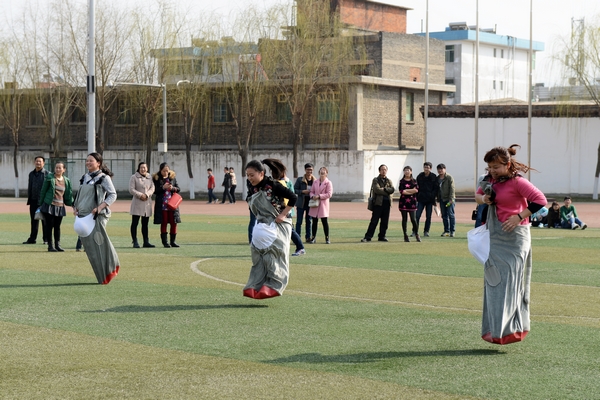 3月8日,春风和煦,阳光明媚,校工会和体育教学部在体育场联合举办了以“凝神聚气迎评建,趣味健身同欢乐”为主题的女教职工趣味运动会,庆祝“三八”国际劳动妇女节。校党委副书记、工会主席彭虎军出席庆祝活动并讲话。工会委员、女工委员、工会各分会主席和女教职工参加了活动。