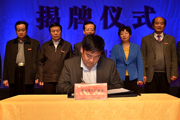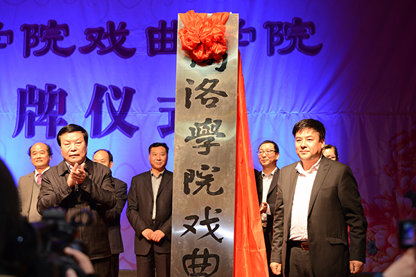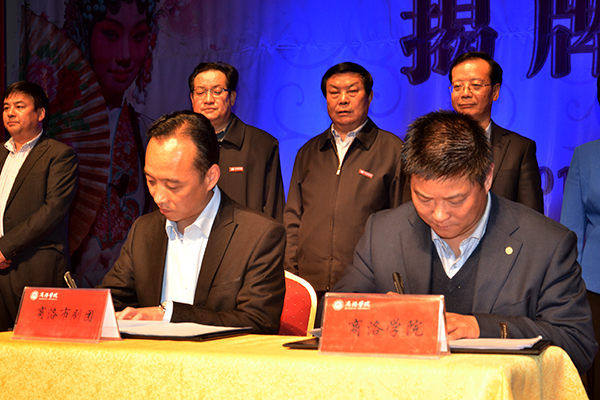 3月31日晚,由我校与商洛市剧团联合成立的商洛学院戏曲学院揭牌仪式在市剧团小剧场隆重举行。我校80届校友、陕西省政府副秘书长、省政府机关事务局局长孟军,商洛市政府副市长刘荣贤出席揭牌仪式,共同见证这一校地合作的盛事。我校党委书记张景书、商洛市文广新局局长周云岳为戏曲学院揭牌,我校副校长范新会、商洛市剧团团长李小斌签署联合成立商洛学院戏曲学院协议书,商洛市文广新局局长周云岳代表鉴证方在协议书上签字。揭牌仪式由校纪委书记王思怀主持。