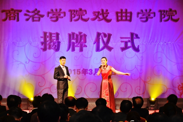 商洛市人民政府副市长刘荣贤代表商洛市委市政府对商洛学院戏曲学院的成立表示热烈祝贺,对广大艺术工作者和长期支持商洛市文化教育事业发展的各界朋友表示衷心感谢。她在讲话中说,商洛学院戏曲学院的成立是商洛文化与教育融合发展的一大喜事,也是商洛戏曲艺术发展的一件盛事,商洛素有“戏曲之乡”的美誉,推出了众多艺术精品,受到了党和国家领导人的高度评价,扩大了商洛戏曲在全省全国的影响力,丰富了广大人民群众的精神生活。她指出,戏曲学院是认真学习、贯彻落实习近平总书记在文艺工作座谈会上的讲话精神和习近平总书记来陕视察讲话精神的有力举措,对推动商洛市地方文化的发展,推动商洛地方特色文化进校园进教室进课堂、培养高素质的戏曲专业人才、不断提高商洛戏曲艺术发展水平有着十分重大的意义。她要求,商洛学院、商洛市文广局、商洛市剧团要齐心协力办好戏曲学院,努力实现教学研究与戏曲的发展共赢,把商洛市戏曲艺术的发展推向一个更高的水平;充分发挥和利用好戏曲学院这个平台,积极投身于商洛学院戏曲艺术的研究教育和发展,不断弘扬社会主义核心价值观,挖掘地方文化特色,为文化强市和建设幸福商洛做出贡献。