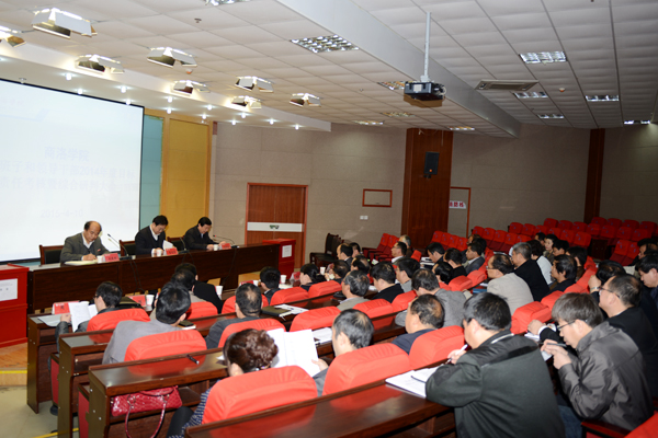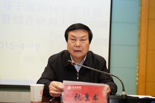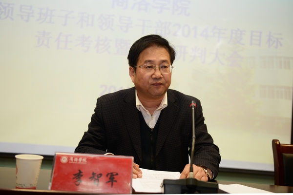 4月10日下午,我校领导班子和领导干部2014年度目标责任考核暨综合研判工作大会在图书馆一楼报告厅召开。陕西省委高教工委委员、统战部部长、考核研判工作组组长李智军,校党委书记张景书,校长刘建林出席大会。大会由张景书主持。