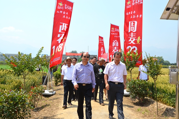 在咸阳市泾阳县兴隆镇,张景书深入商麦“5226”示范田,与商麦种植示范户亲切交谈,观摩了商麦的抗旱性、长势、落黄及籽粒饱满情况,了解了商麦“5226”在今年多雨季节的抗病情况、产量及推广面积。泾阳县现代种业公司经理藏喜详细介绍了商麦“5226”在渭北旱塬、甘肃陇南的实验情况,并表示“商麦5226”有望成为渭北旱塬地区小麦主栽品种。