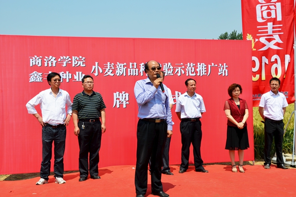 刘建林代表学校对我校周至县小麦新品种试验示范推广站正式揭牌表示热烈祝贺。刘建林指出,商洛学院近年来紧密结合当地主导产业,深入开展科学研究,加强科技成果转化,尤其是在小麦育种方面取得了重要成果,通过周至小麦试验站的建立,可以进一步发挥人才、技术优势,加快商麦“5226”、“1619”等品种的转化步伐,更好地支持渭北旱塬、秦巴山区及陕西周边地区小麦品种的更新换代,力争取得良好的经济效益和社会效益,为服务“三农”做出贡献。