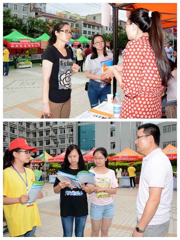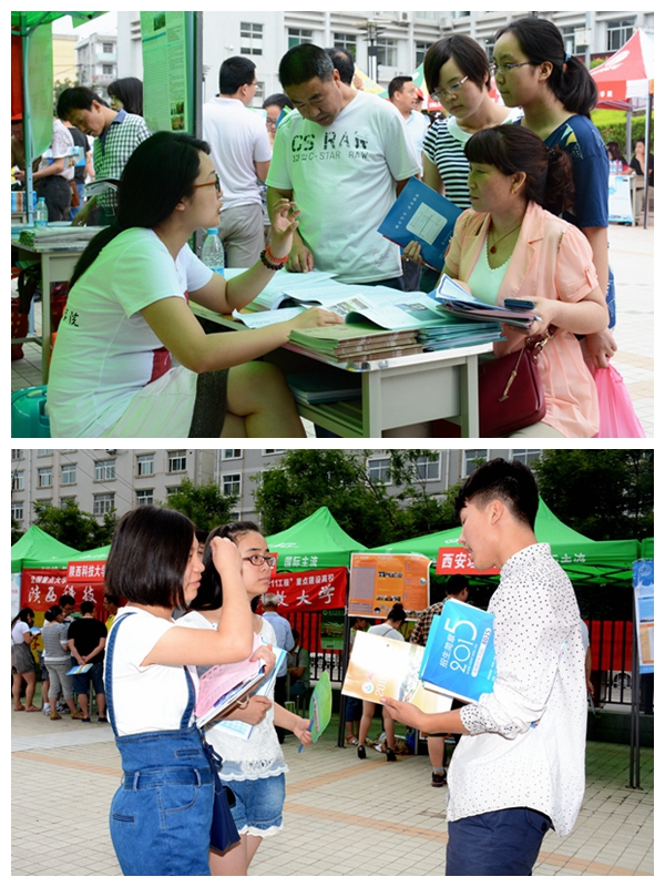 6月26日,我校2015年“校园开放日暨高考咨询会”在一号教学楼前广场成功举办。我校与西北工业大学、西北农林科技大学、西北大学、西安理工大学、陕西师范大学等20多所省内兄弟院校现场为广大高考考生及家长提供了全方位的招考咨询服务。活动吸引了商洛及周边地区1200余人次的广泛参与。