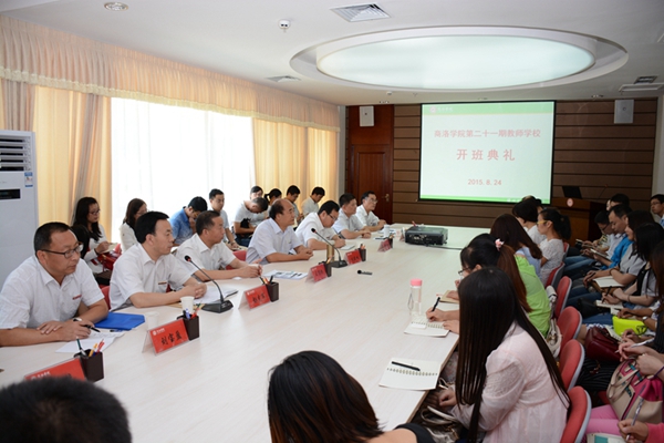 8月24日,我校教师学校第二十一期培训班举办了开班典礼,60名新入职教师参加了培训。校领导刘建林、王思怀、魏书堂、彭虎军、范新会、刘宝盈,教师发展中心、干部人事处负责人出席开班典礼。开班典礼由党委副书记彭虎军主持。
