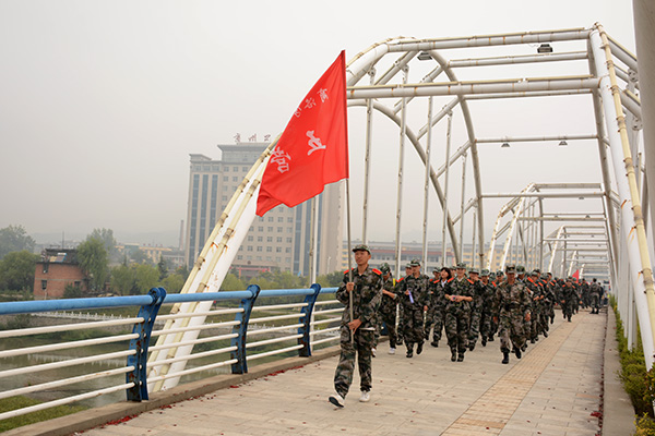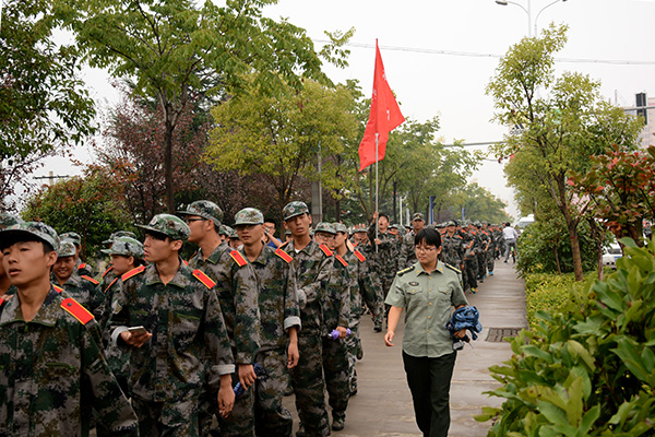 9月17日,我校2015级新生在军训团和全体教官的带领下,顺利完成了作为军训重要科目的行军拉练活动。