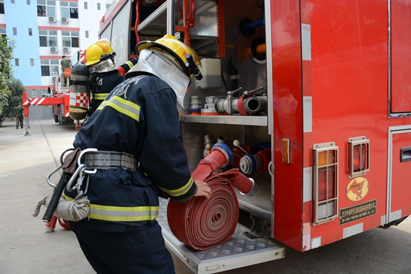 消防官兵抵达现场,展开设备