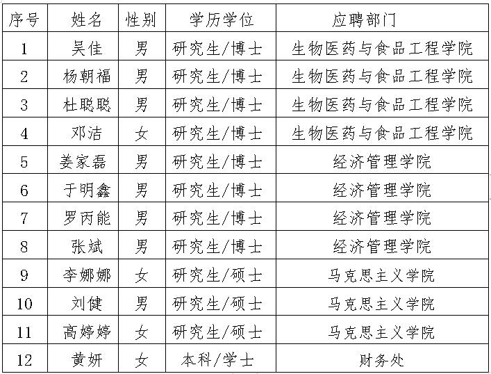 商洛学院2020年第四批拟招聘人员名单(12人)