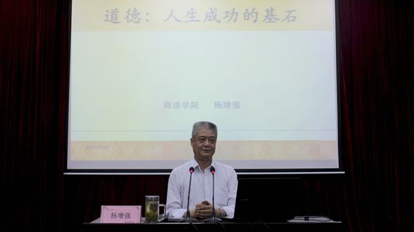 本期道德讲堂由唱道德歌曲、诵道德经典、学道德模范、听道德报告四个环节组成。活动在悠扬的《公民道德歌》中拉开帷幕,随后,在健康管理学院教师李梦姣的带领下,社会1801班全体学生诵读了《弟子规·信》中的片段,深情诠释了道德经典的魅力,赢得了阵阵掌声。接着,现场人员共同观看了陕西省第五届道德模范、孝老爱亲类“中国好人”唐伟丽的感人事迹短片。活动还邀请我校图书馆馆长杨增强教授以“道德:人生成功的基石”为题作了专题报告,报告指出,当代大学生应牢固树立社会主义核心价值观,坚持诚实守信的人生信条,把诚信融入到学习生活的方方面面。