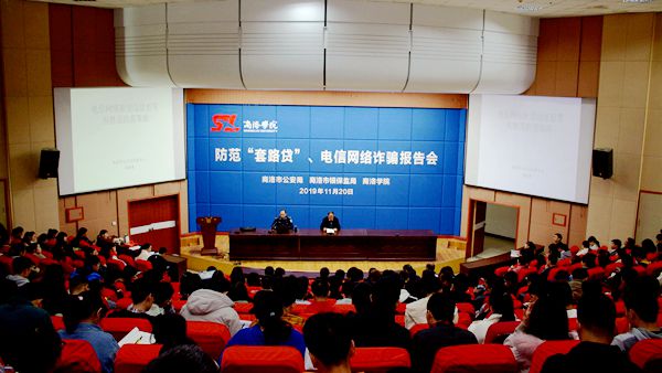为贯彻落实陕西省公安厅、教育厅《关于开展“百城千校”集中宣传活动的通知》文件精神,进一步提高我校广大学生防范“套路贷”、电信网络诈骗的意识和能力,保障广大师生的财产安全,11月20日,我校联合商洛市公安局、市银保监局开展防范“套路贷”、电信网络诈骗集中宣传活动,向广大师生发放各类防范诈骗资料2000余份,并举办了防范“套路贷”、电信网络诈骗报告会。保卫处、学生处相关工作人员,全体辅导员,学生安全信息员共计400余人聆听了报告。