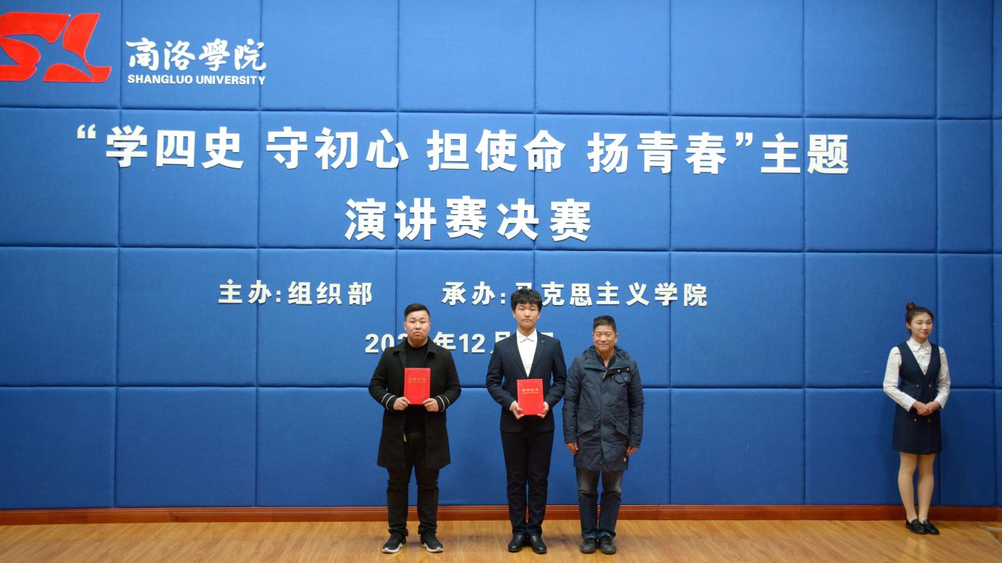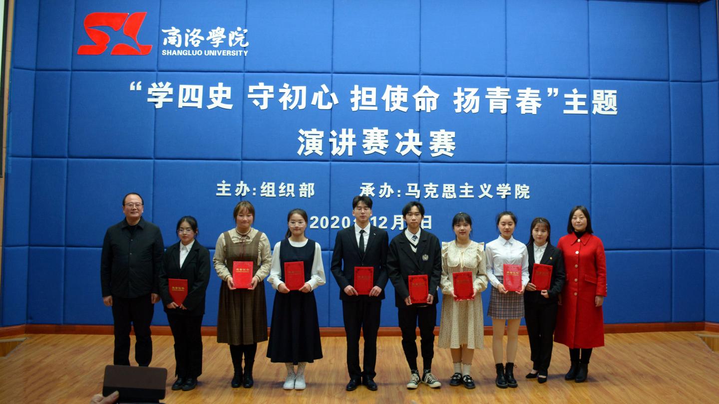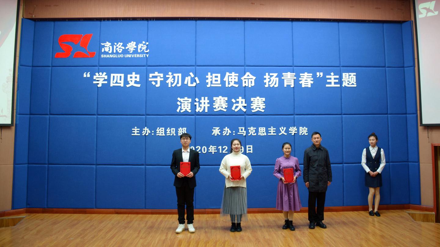 为深入贯彻习近平总书记关于深入学习党史、新中国史、改革开放史、社会主义发展史的重要指示精神,引导师生知史爱党、知史爱国,以实际行动迎接建党100周年,12月9日,由校组织部主办,马克思主义学院承办的“学四史、守初心、担使命、扬青春”主题演讲赛决赛在图书馆二楼报告厅举办。校党委书记龙治刚、校长范新会、党委副书记刘勇出席并为获奖选手颁发荣誉证书,有关部门负责人、各二级学院师生代表共200余人观看了比赛。