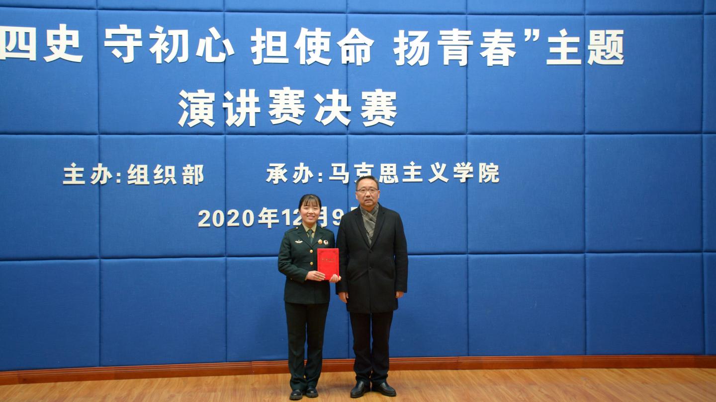 参加决赛的14名选手来自于10个二级学院,历经初赛、复赛的层层选拔。比赛中,选手们用慷慨激扬、情真意切的演讲,阐述自己对“四史”的理解,抒发对祖国和党的赤诚之心,展现了我校学子浓厚的家国情怀,其中,来自经管学院的学生申怡琳身着戎装,以《为祖国而战》为题,向师生们分享了自己的参军感悟,呼吁新时代大学生勇担使命、奋勇向前,赢得评委一致好评,最终荣获一等奖。建工学院党一石及经管学院米和荣获二等奖,人文学院陶亮、艺术学院王仪、健康学院马滢荣获三等奖,肖佳月、薛颜泽、夏珏、刘亚楠、杨政、刘垚、张嘉欣、马菲菲八位同学荣获优秀奖。