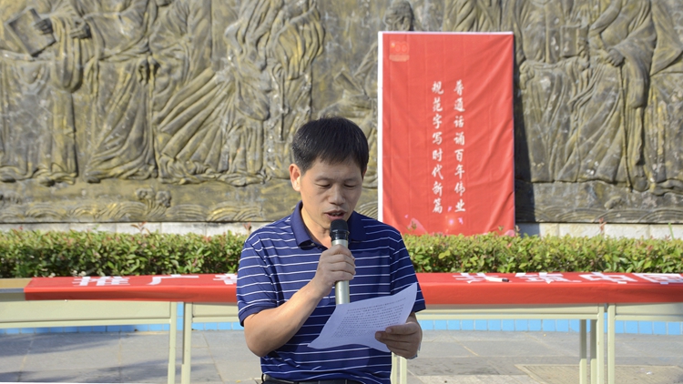 为贯彻落实全国语言文字会议精神,传承弘扬以语言文字为载体的中华优秀文化,进一步增强我校师生学习国家通用语言文字意识,9月13日下午,人文学院举办了“普通话诵百年伟业,规范字写时代新篇”第24届普通话推广宣传周活动启动仪式。人文学院院长张文诺作动员讲话,教务处副处长高扩昌宣布“推普周”活动正式启动。
