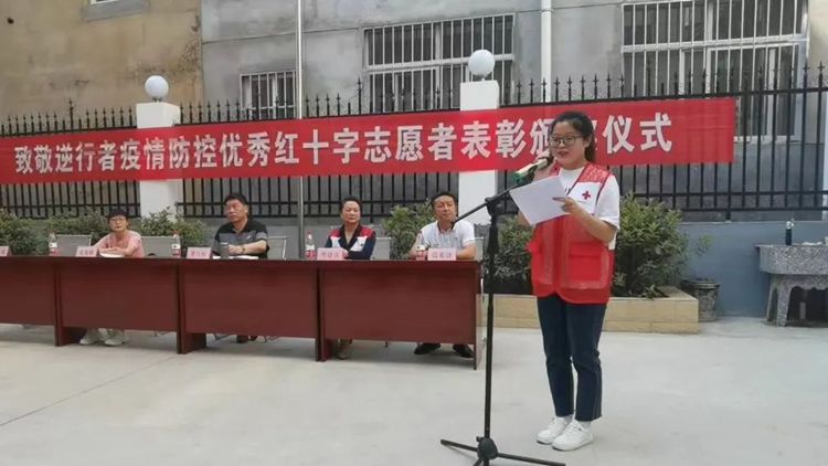 近日,商洛市委宣传部、市文明办和商洛市红十字会联合举办致敬逆行者疫情防控红十字会志愿者表彰大会。市委宣传部副部长、市委文明办主任李丹峰,市红十字会常务副会长樊建真、市纪委监委驻人大常委会机关纪检监察组四级调研员朱艳琳,商州区新时代文明实践中心主任张西锋出席大会。我校教师刘霞、学生石含玉被评为优秀红十字志愿者,张坡社区向刘霞所在的“爱商洛”红十字志愿服务队赠送了“风雨同舟战疫情 爱心奉献暖人间”锦旗,石含玉作为优秀志愿者代表发言。