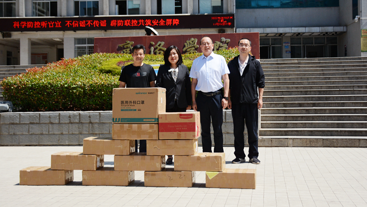 6月1日上午,商洛市卫健委副主任汶希来我校调研指导疫情防控工作,并向我校捐赠一批洗手液、口罩等防疫物资。副校长郭瑾代表学校接受捐赠。市卫健委法规科副科长吕杭东陪同调研。