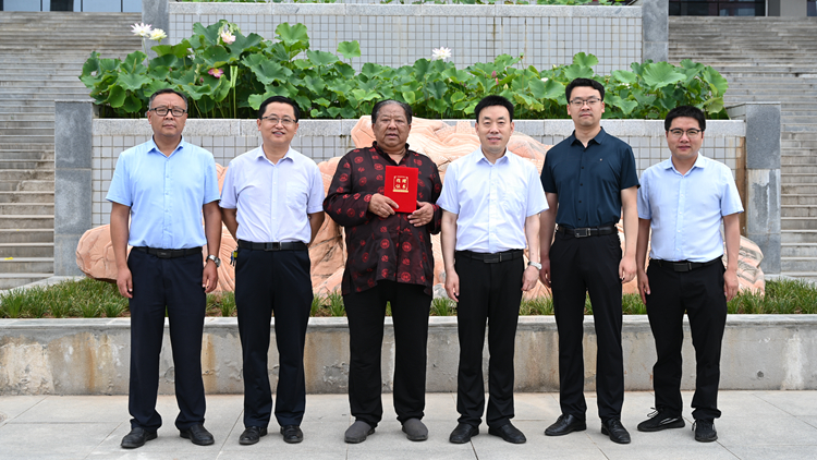 6月22日上午,商洛民间艺术家刘孝明向我校捐赠一方景观石(南阳红)艺术石刻。党委副书记彭虎军代表学校接受捐赠,并向刘孝明颁发了捐赠证书。宣传部、发展规划处、资产处、后勤保障处相关负责人共同见证了捐赠仪式。