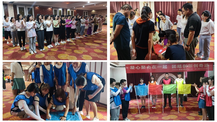 团建活动分为《破冰游戏》《团队密码》《挑战平行线》《智勇闯三关》和《生命动力圈》五个环节。在活动中教职工们通力协作、积极探索、激发了个人潜能,增强自信和自制能力,培养了创造性思维,熔炼了团队精神。