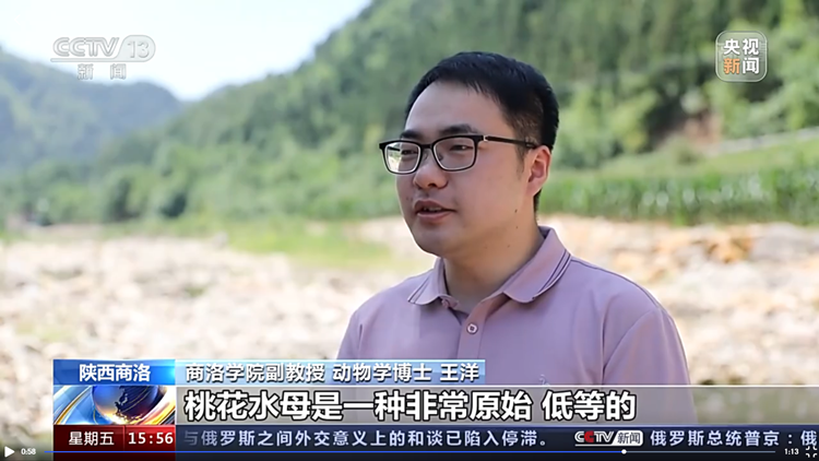 日前,一则《丹凤县发现桃花水母》的新闻登上中央电视台13套《新闻直播间》栏目。新闻指出,有当地群众在丹江发现一种类似水母的生物,经我校生物医药与食品工程学院副教授王洋博士鉴定,确认其为有“水中大熊猫”之称的桃花水母。