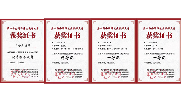 近日,第四届全国师范生微课大赛结果公布。我校师生获得各类奖项13项,其中学生荣获特等奖1项、一等奖2项、二等奖8项,人文学院乔金果老师荣获优秀指导教师,学校荣获优秀组织单位奖。这是我校参与此项赛事以来首次荣获优秀组织奖,实现了学校集体奖、学生获奖等级和获奖总数多项突破。