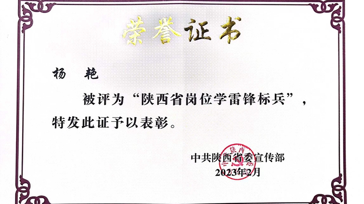 日前,中共陕西省委宣传部发布《关于命名2022年度学雷锋活动示范点和岗位学雷锋标兵的决定》,我校体育教学部教师杨艳荣获“岗位学雷锋标兵”荣誉称号。在此次命名活动中,全省范围内共有72名同志获此殊荣,38个单位被命名为“2022年度陕西省学雷锋活动示范点”。