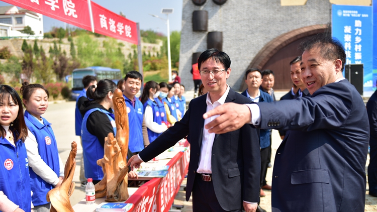 4月1日,以“凝聚科技力量,助力乡村振兴”为主题的商洛市第三十一届“科技之春”宣传月暨商洛学院“双百工程”启动仪式主场示范活动在丹凤县棣花镇举办。商洛市委常委、副市长孙举恒,我校副校长王新军,商洛市科协主席黄恒林,丹凤县委副书记王小宁出席活动。我校科技处、艺术学院相关负责人,45名志愿者、丹凤县25家成员单位以及500余名群众参加活动。