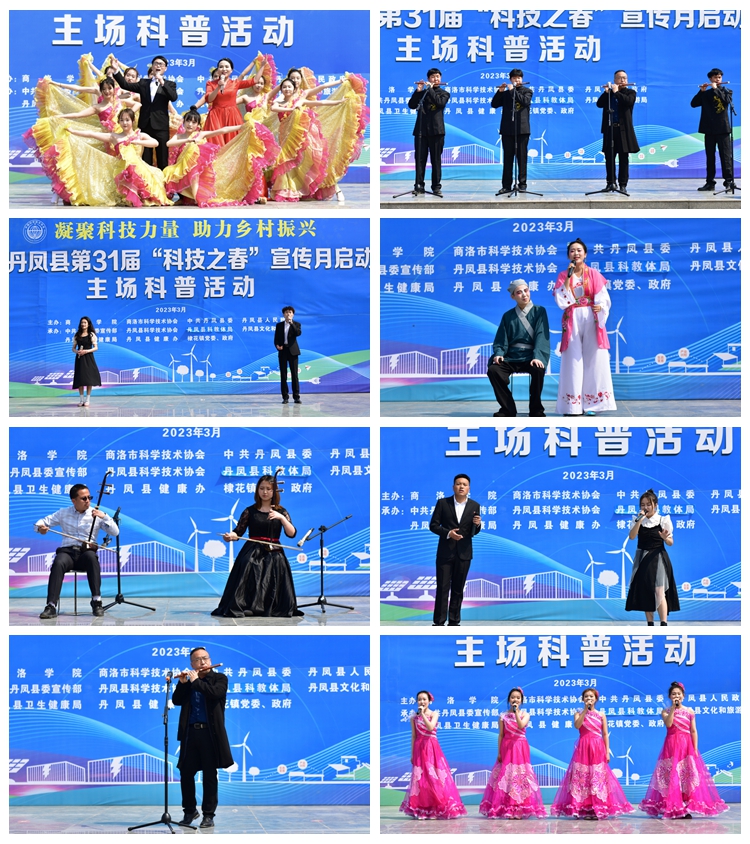 我校健康管理学院、生物学院的师生以“情景剧+讲解”的形式,为现场群众开展心肺复苏训练、农作物栽培、中草药种植、健康膳食、老年护理等方面的科普宣传活动。来自艺术学院的师生声情并茂地表演了花鼓戏、笛子演奏、歌伴舞等文艺节目,饱含商洛文化元素,同时展出的根雕艺术作品也为群众带来美的享受。通过现场发放800余份宣传资料、开展有奖科学知识问答等宣传形式,让参与群众在笑声中感受商洛文化、学习科学知识,进一步激发了大家热爱祖国、热爱家乡、崇尚科学的热情。