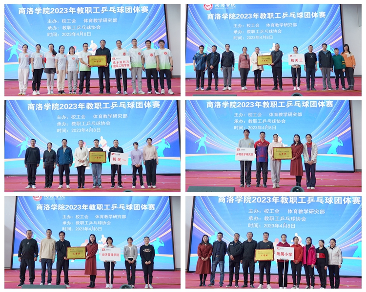 4月8日,我校2023年教职工乒乓球团体赛在丹江校区体育馆顺利举行。来自学校各工会分会以及商洛学院附属小学、附属幼儿园的17支代表队,包括运动员、裁判员及教练200余人参加了比赛。副校长王新军、商洛学院附属小学校长赵阿玲、附属幼儿园园长刘莉莉出席活动并为获奖代表队颁奖。工会及体育教学研究部相关负责人参加活动。