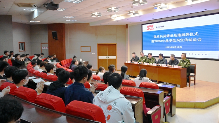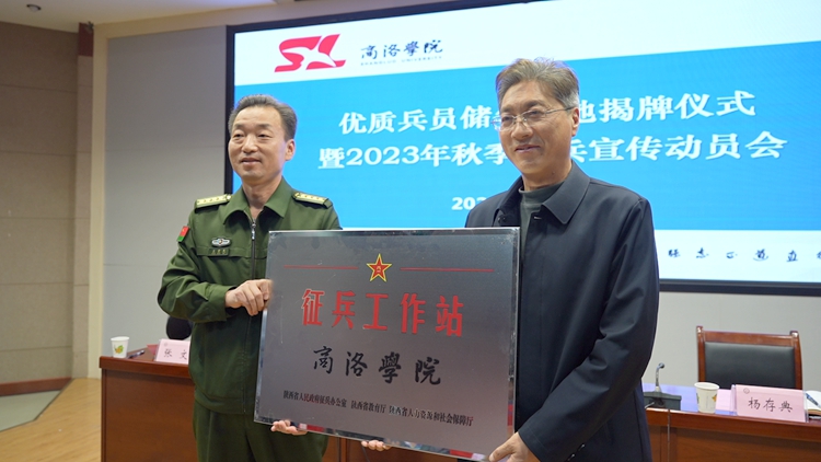 4月12日,我校举办2023年优质兵员储备基地揭牌仪式暨征兵工作进校园政策宣讲动员会。商洛军分区大校司令员、市征兵领导小组副组长王宏民,校长范新会出席会议。商洛军分区动员处上校处长、市人民政府征兵办公室副主任曹建明,商州区人武部上校部长周武强,我校人民武装部主要负责人,各二级学院征兵工作联络员及毕业生代表160余人参加会议。