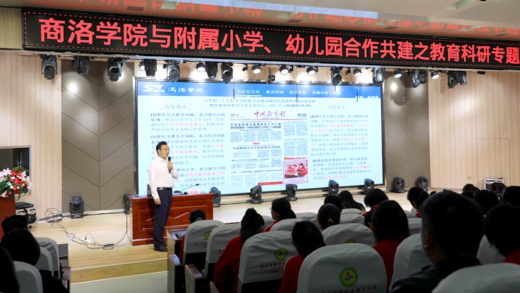 为进一步深化我校与附属学校的合作共建,提升附属学校教师的教育科研能力,4月21日下午,我校电信学院院长袁训锋博士、督导评估中心·教育教学研究中心教师薛雨受邀在附属小学以“合作共建谱新篇时雨润放科研花”为主题,围绕陕西省教育科学“十四五”规划2023年度课题申报作了专题培训。附属小学校长赵阿玲出席培训会并致辞。附属小学副校长郭亚宏主持会议。附属小学及附属幼儿园全体教师参加了本次培训。