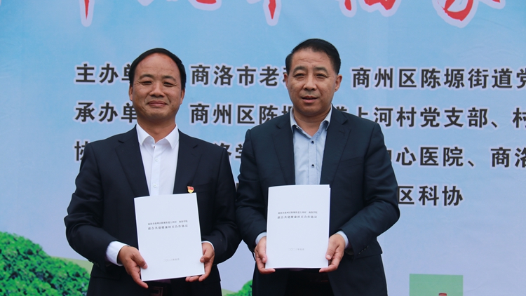 5月8日下午,商洛市举办商州区上河村邮政幸福家园揭牌暨共建健康村庄签约仪式。商洛市委常委、副市长孙举恒,我校副校长王新军,商州区副区长蔡磊,中国邮政陕西分公司资深经理任树林出席仪式。商洛市慈善协会、商洛市老科协、市老年大学等单位负责人,我校健康管理学院院长郭耀东、科技处相关工作人员及经济管理学院教师代表参加活动。
