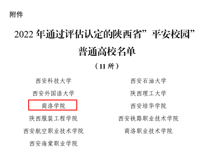 近日,中共陕西省委教育工委、陕西省教育厅印发《关于授予西安科技大学等107所学校陕西省“平安校园”称号的决定》(陕教工函〔2023〕119号),经专家组现场对标打分、集体研究,省教育厅厅务会议审议,我校继2017年首次获得省级“平安校园”称号之后,再度荣获陕西省“平安校园”荣誉称号。
