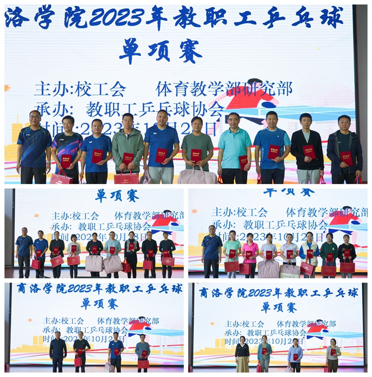 10月28日,我校2023年教职工乒乓球单项赛在丹江校区体育馆顺利举行。副校长刘宝盈、郭瑾与来自学校各二级单位以及附属小学、附属幼儿园的80余名运动员参加了比赛。刘宝盈为获奖运动员颁奖。工会、体育教学研究部负责人参加活动。